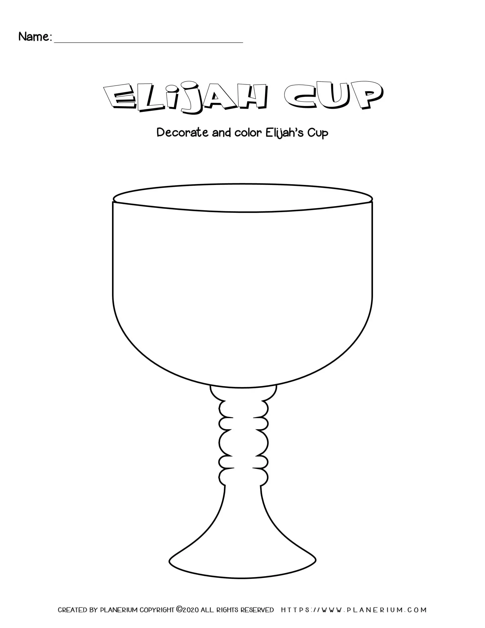 Worksheet for Passover with Elijah cup and title in Hebrew. Click here for the Hebrew version.