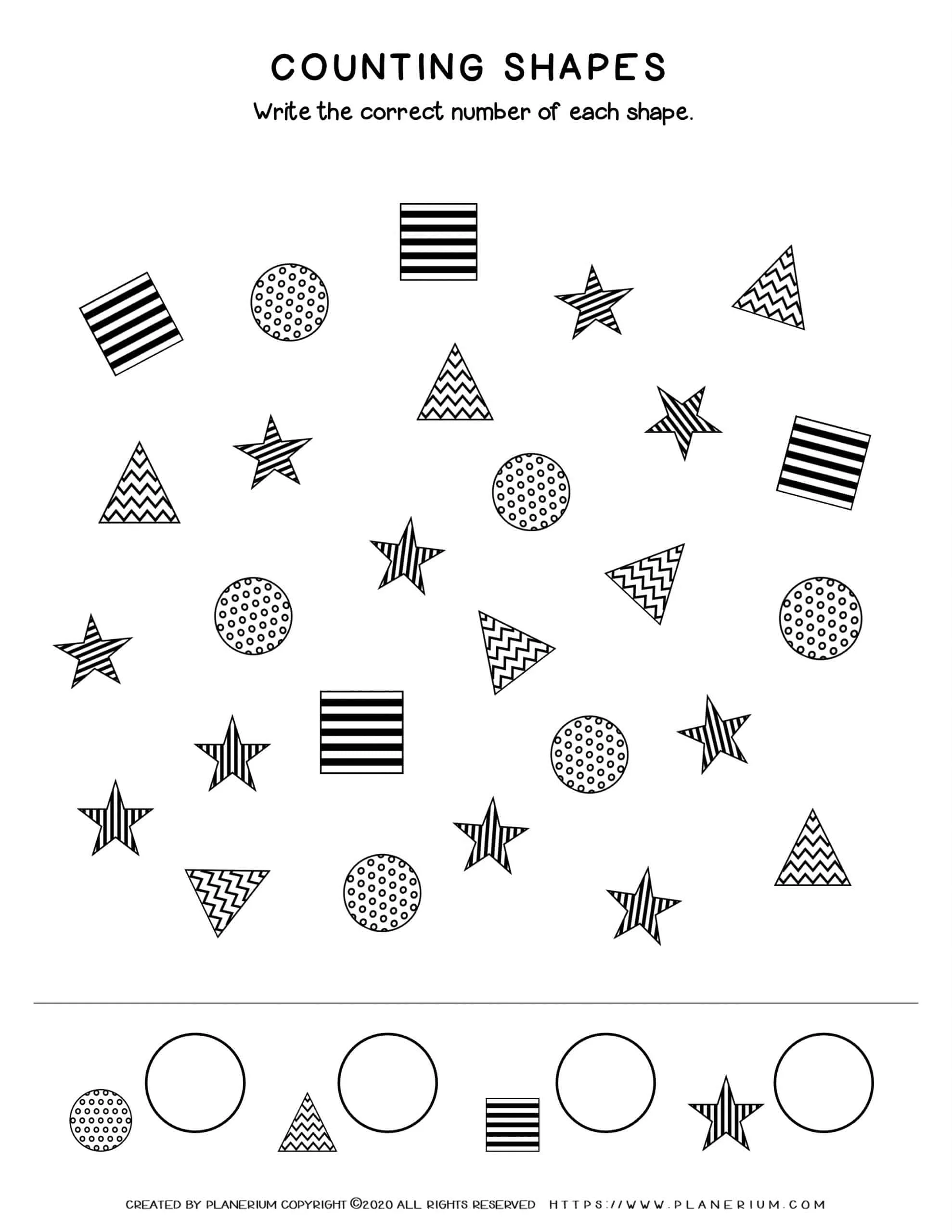 Shapes counting worksheet for Kindergarten and first grade