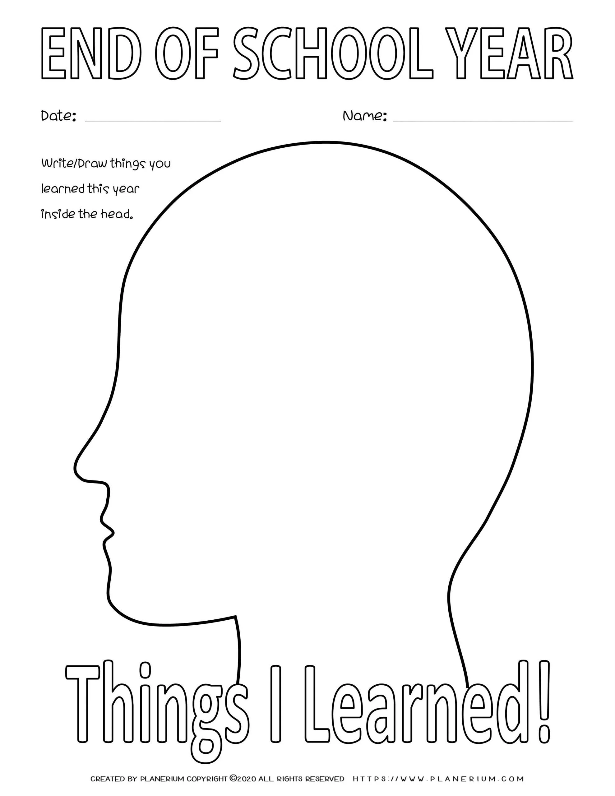 Planerium’s FREE end of school year printable, “Things I Learned Review – In My Head,”